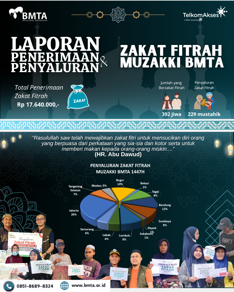 Berikut kami lampirkan Laporan Penerimaan dan Penyaluran Zakat Fitrah Ramadan 1447 H / 2026 M